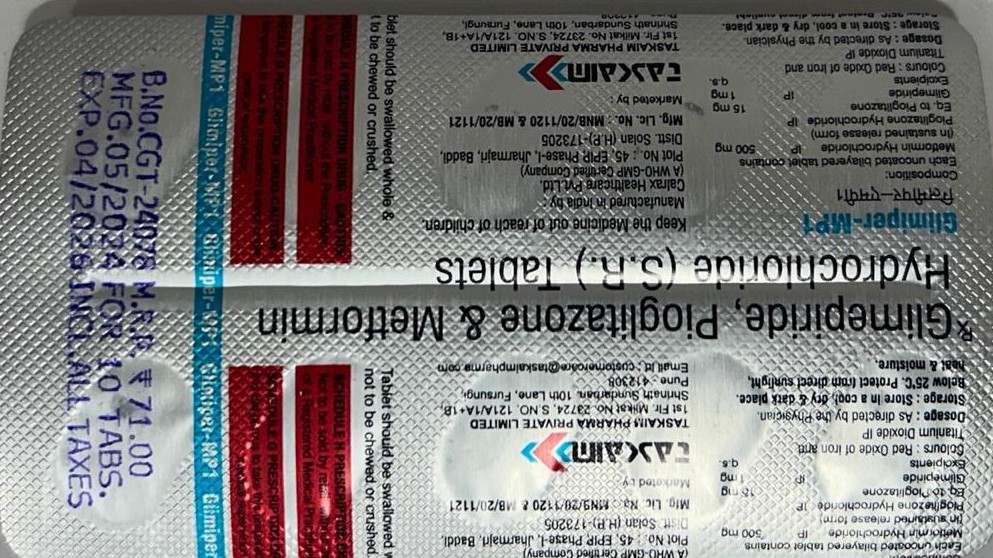 Ingredients: Glimeperide 1 mg +Metformin 500 mg+ Pioglitazone 15 mg