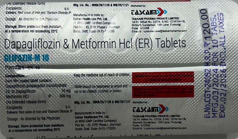 Ingredients: Dapagliflozin 10mg + Metformin 500mg